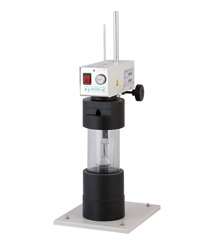in Anlehnung an die EN 12593:2015-09 zur Bestimmung des Brechpunktes von Bitumen bei tiefen Temperaturen. Gerät bestehend aus motorisch angetriebener Biegevorrichtung mit Prüfglas, Dewargefäß mit Fuß sowie Thermometer -38 .. +30° C. Die Prüftemperatur …..
